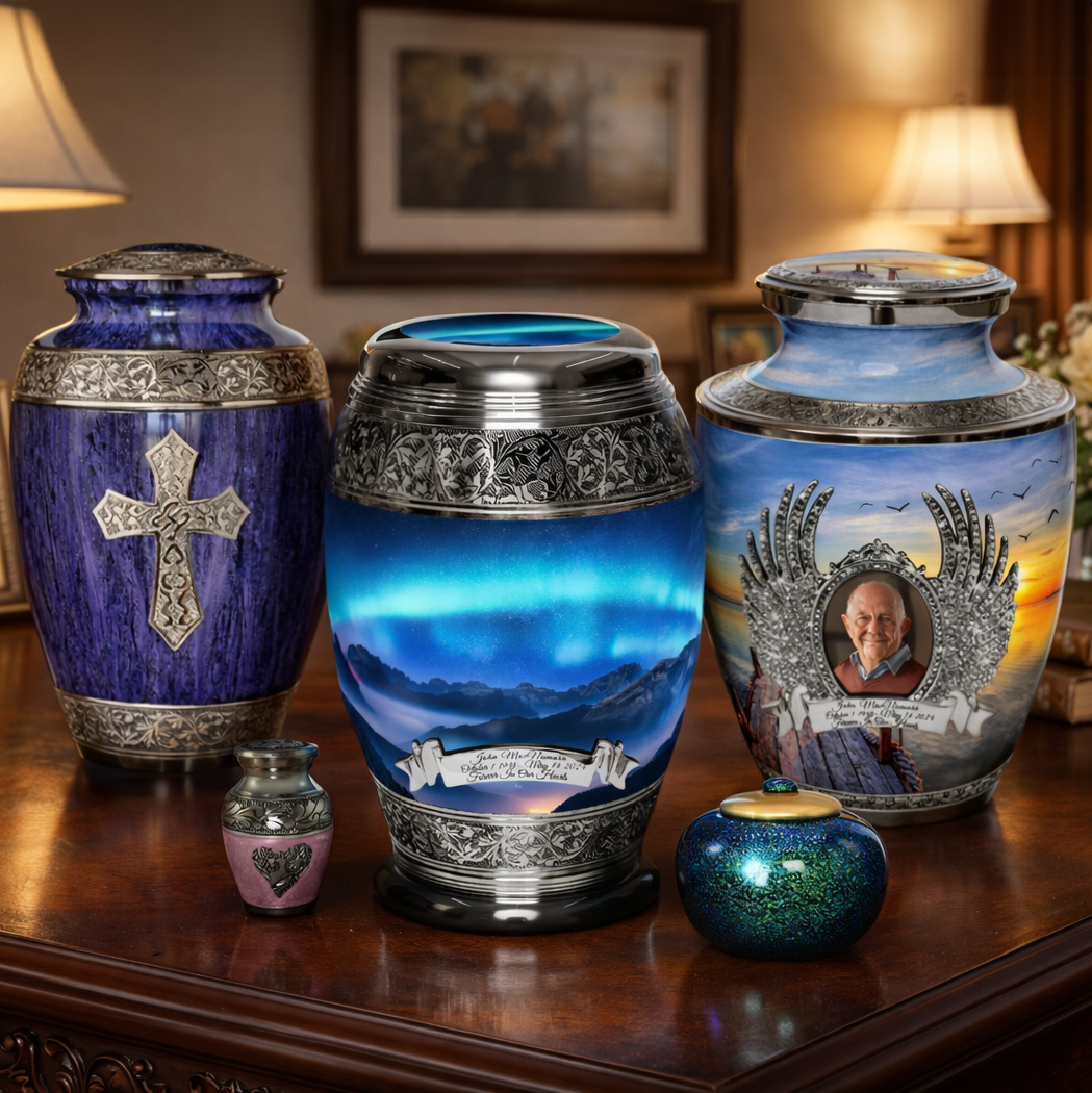 We take pride in offering the widest range of funeral urns, each crafted from the highest quality materials and featuring unique designs, colors, and themes to suit various styles. Our manufacturers are carefully selected to ensure they adhere to the highest quality standards.
