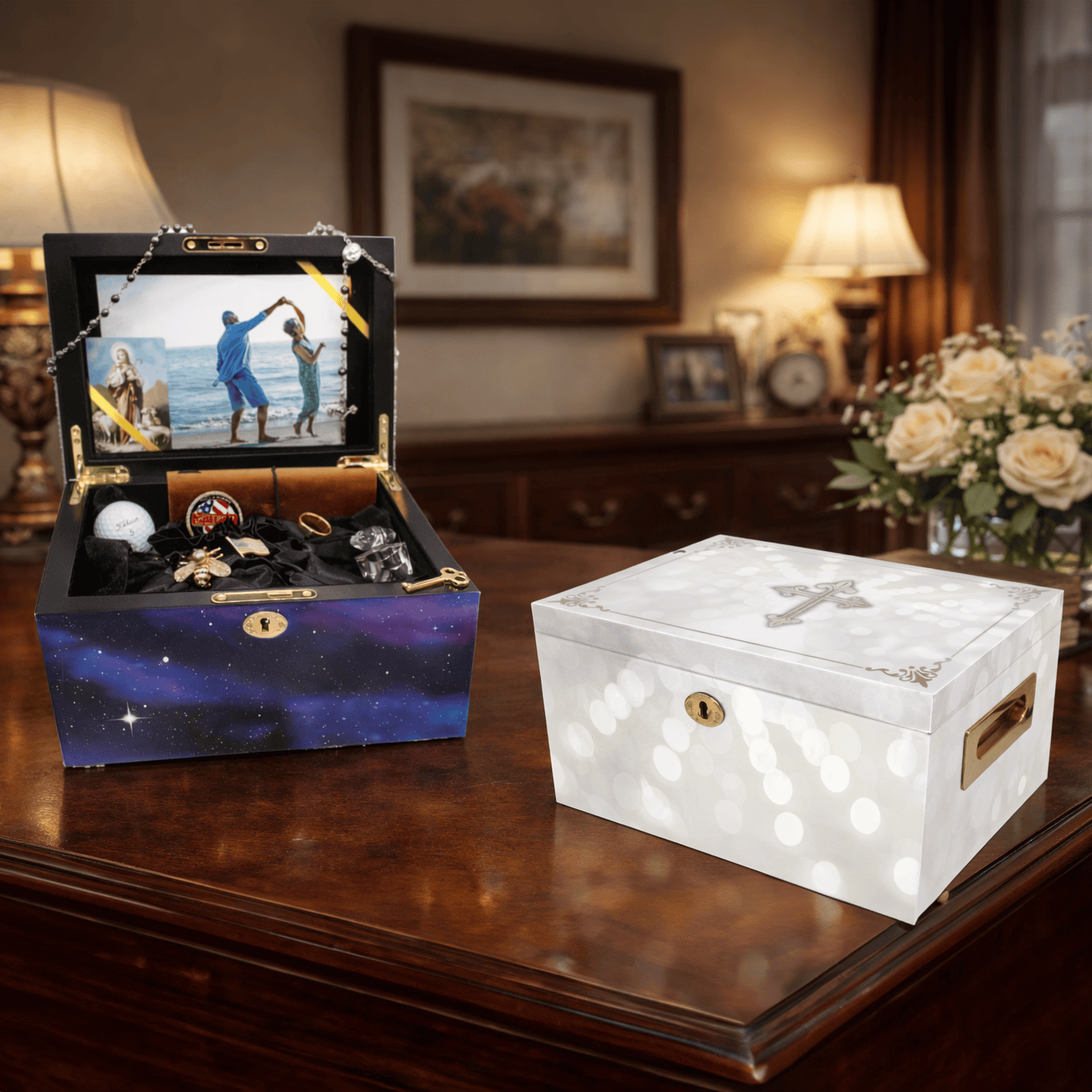 Created for those drawn to the beauty and spiritual resonance of natural crystals, this memorial chest is a meaningful tribute and an extraordinary work of art. Designed as the perfect gift for a divine crystal lover, it blends remembrance with reverence, offering a space where memory, energy, and love are thoughtfully preserved.