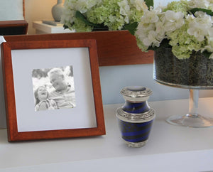 Our patriotic urns are both a respectful resting place for a loved one and a beautiful work of art for your home. Our designers are dedicated to creating urns with you in mind, allowing us to create elegant and meaningful urns that serve as a respectful resting place for your loved one and add beauty to your home. This family of cremation urns features an American flag, an American flag with a red line, or an American flag with a blue line. These are the perfect patriotic urns to celebrate the life of a loved one, especially former firefighters, police officers, and first responders.