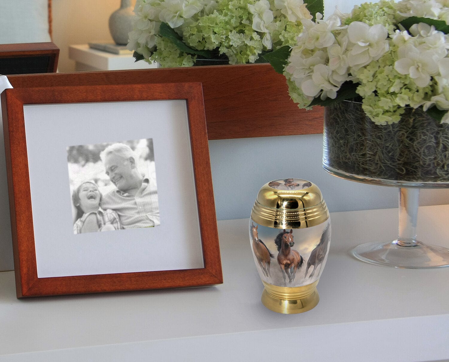 The Wild Horse Cremation Urn offers a meaningful way to honor the memory of someone who embraced freedom, strength, and an untamed spirit. Inspired by the beauty of nature, this urn features five majestic wild horses running across open fields, symbolizing a journey unbound and a soul forever free.