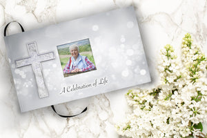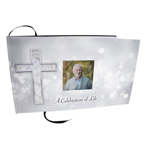 Silver Cross Matching Themed 'Celebration of Life' Guest Book for Funeral or Memorial Service